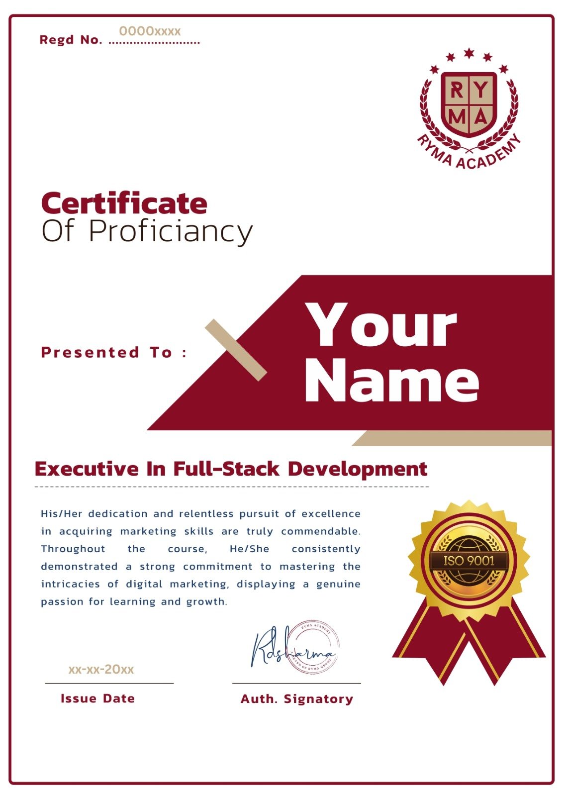 Complete all course modules successfully to receive an Advanced Certificate in Full Stack Web Development from RYMA Academy – your gateway to top tech careers.